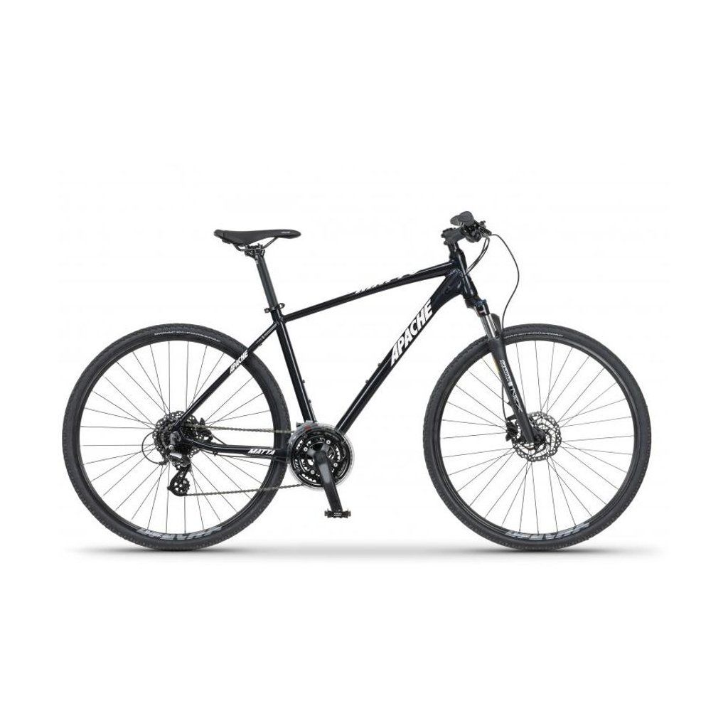 Apache Matto A1 je krosové kolo s hlinikovým rámem, koly o průměru 28 palců, odpruženou vidlicí a pohonem 3x9.