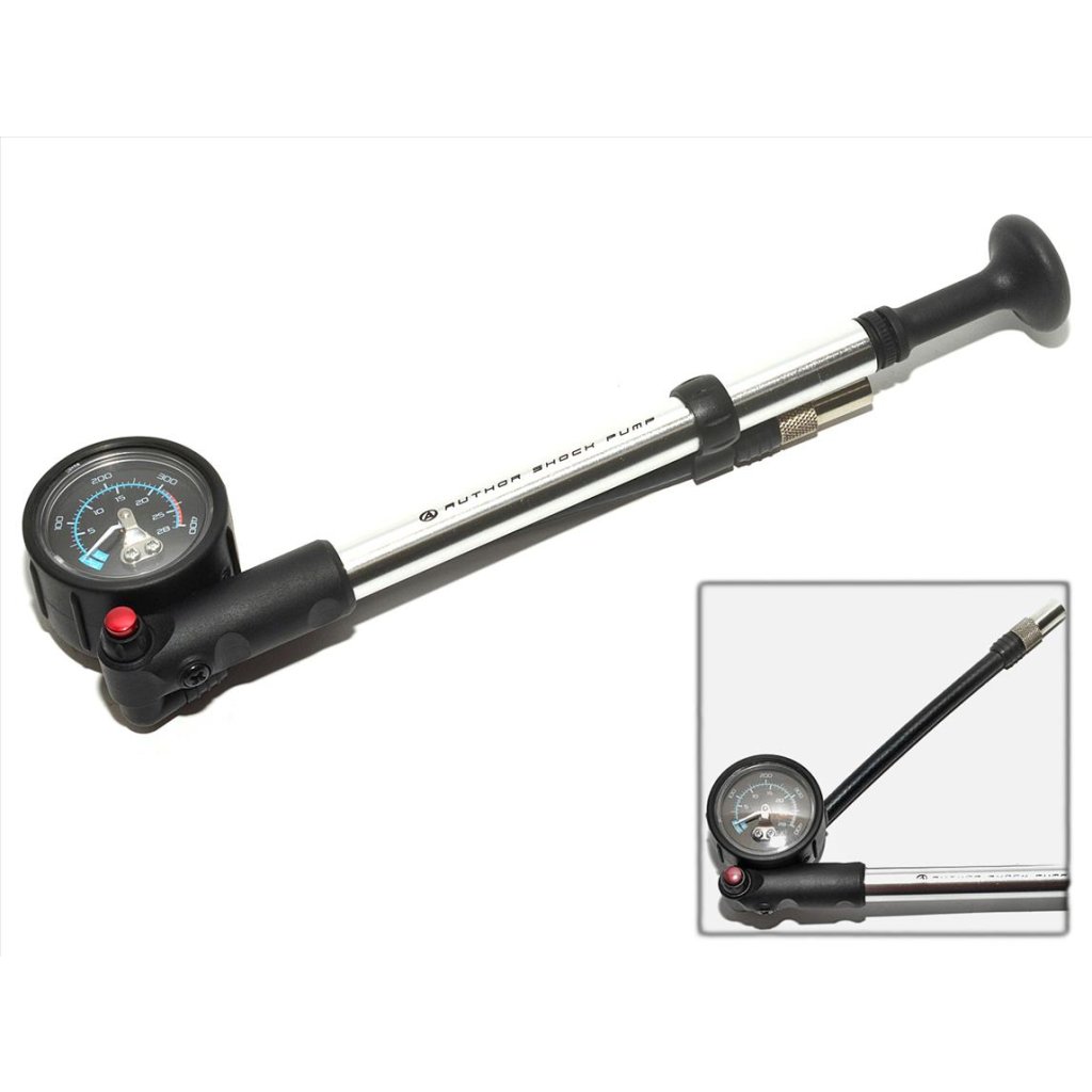 Hustilka na odpružené vidlice a zadní pružící jednotky, zpětný ventil pro možnost snížení tlaku, materiál AL6061 / Cr-Mo, max. tlak až 300PSI (2MPa), rozměr 60 x 250mm, hmotnost: 146g.
