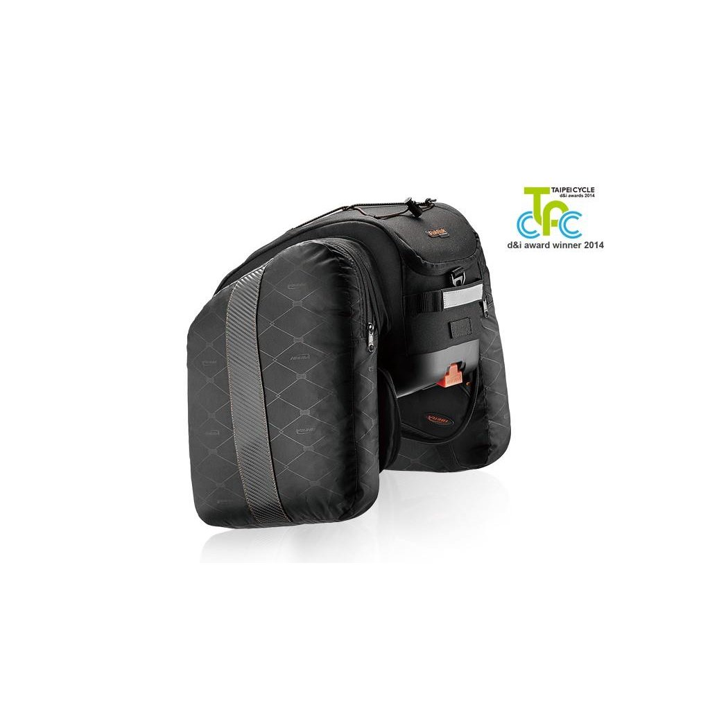 IBERA vyvinula nový PakRak MultiMount Bags unikátní systém upínání cyklistických brašen na nosiče jízdních kol všech výrobců. 370x220x200Brašny IBERA tak na nosiče přichytíte pomocí klipu PakRak Clip-On pevně, bezpečně, během několika sekund, bez nutnosti nářadí, popruhů, nebo gumicuků. Nic není tak snadné a pohodlné, jako PakRak Clip-On integrovaný systém značky IBERA. Brašna obsahuje speciální adaptér, který lze namontovat na nosiče různých výrobců, díky kterému může využívat PakRak systém i uživatel, který není vybaven nosičem Ibera.