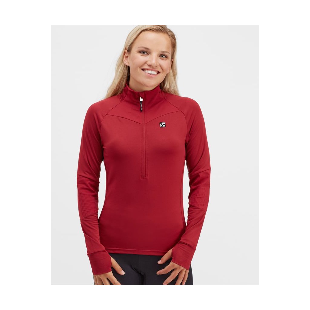 Latera je dámská mikina úzkého střihu s 3/4 zipem. Je vyrobena z velmi prodyšného a pružného materiálu, a tak je především vhodná jako spodní vrstva pod zateplené bundy.