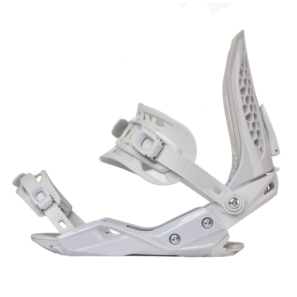 Pohodlí a vysoká úroveň tlumení. To jsou jedny z předností vázání Gravity G2 Lady, které je specificky navrženo pro ženy. Vybaveno je měkkým EVA materiálem jak v oblasti základny, tak na opěrné patce, tlumí nárazy při dopadech a dopřává tak tvým nohám komfort při celodenní jízdě. G2 je vybaveno kotníkovým Flex 3D Strapem, který je lehký, přizpůsobí se botě a podpoří pohotovou odezvu. Přední strap ti umožní přizpůsobení dle tvých preferencí a zapnout ho můžeš klasicky zeshora, nebo přes špičku.