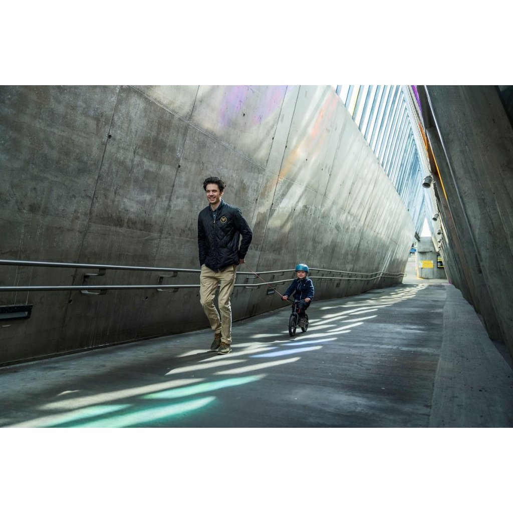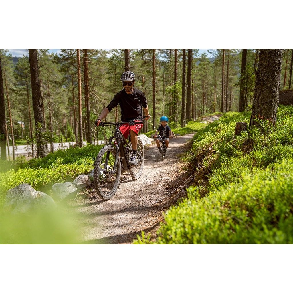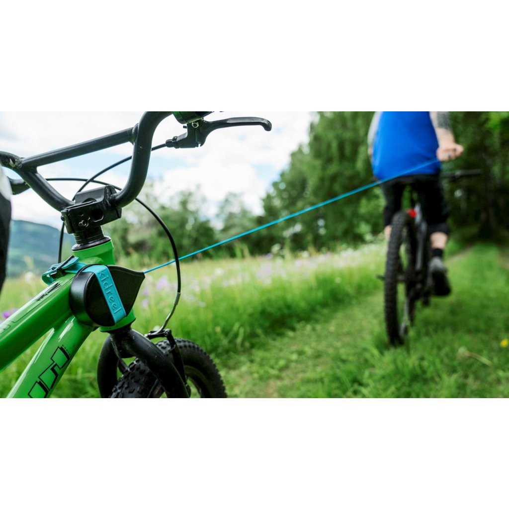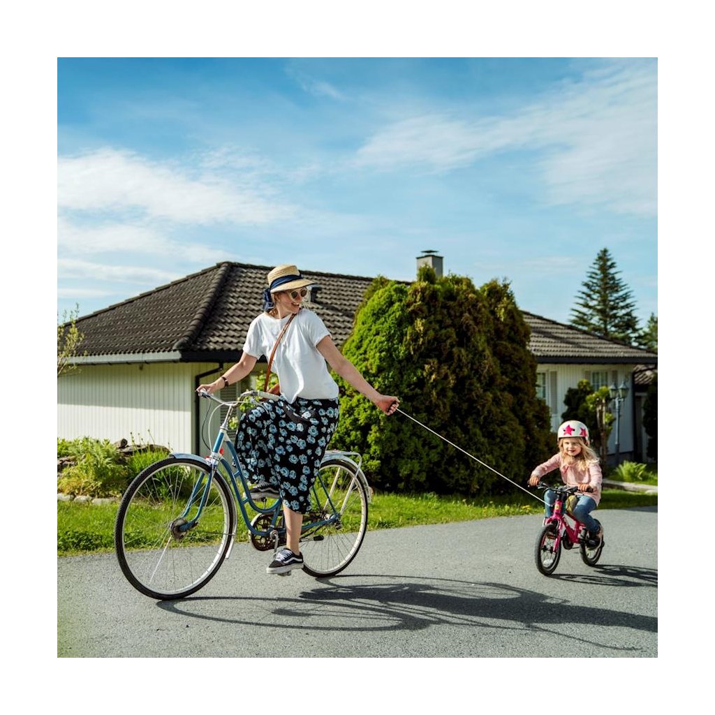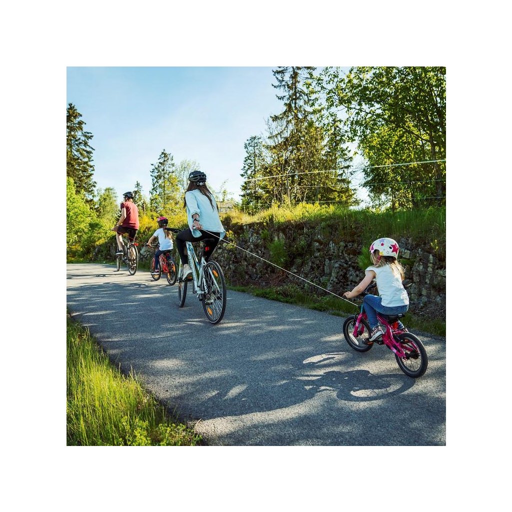 Když přijde velký kopec, chytnete pogumovené madlo, vyrolujete lano a pomůžete dítěti. Na kopci madlo pustíte a lano se automaticky navine. Lano je dlouhé 2 metry. Při pouštění lana zpět do navijáku doporučujeme zkrátit vzdálenost mezi madlem a navijákem na maximálně 1 metr.