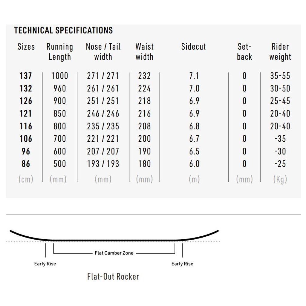 Prkno, na kterém je zábava se učit. Flat-Out Rocker předchází nechtěnému zakusování hrany, snadno navazuje oblouky, lehce brzdí. Díky této konstrukci si vaše ratolesti podmaní celé hory a v pohodě absolvují i první krůčky, skůčky a slajdíky ve snowparku. Mladí dravci se na nově reshapovaném Ripperu x Volcom snadno naučí ovládat snowboard na hraně a brzdit i kontrolovat rychlost jízdy. Velice brzy se tak stanou plnoprávnými členy vaší jezdící rodiny. Přesnou jízdu bez nečekaných zádrhelů a zákusů přináší Flat-Out Rocker. Pružnost prkna – Softride Flex – je nastavena tak, aby se přirozeně ohýbalo pod dětmi všech velikostí, které se chtějí celé dny bavit skotačením na sněhu. Toto Twin prkno pomáhá těm nejmladším rychle dohnat zkušenější jezdce. Ripperem začíná snowboarding! * TVAR: TWIN * ROCKER: FLATOUT * ŠÍŘKA: STANDARD * YOUTH PRUŽNOST: SOFTRIDE, 2/10 * VYKROJENÍ: RADIAL * POWERCORE, BI-LITE LAMINÁT, SKLUZNICE PREMIUM EXTRUDED FH.