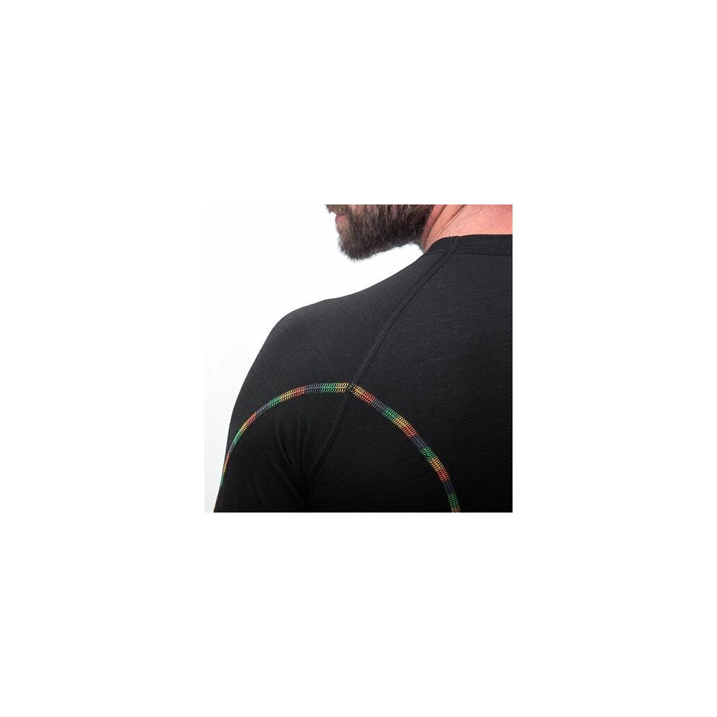Lehké funkční prádlo vyrobené z exkluzivního úpletu Merino Air. Slavnému Merinu v tomto případě dodává šmrnc špetka polyamidu, která zlepšuje termoregulaci úpletu, zvyšuje elastičnost, tvarovou stálost a prodlužuje životnost. Jedná se o jednolícní úplet ze směsové příze velmi jemné Merino vlny a polyamidového hedvábí. Výrobek oživují barevné ploché švy. Díky rychleschnoucímu materiálu se toto prádlo skvěle hodí pro sporty s vysokou pohybovou zátěží, sálové sporty i outdoorové aktivity. #sensormerino