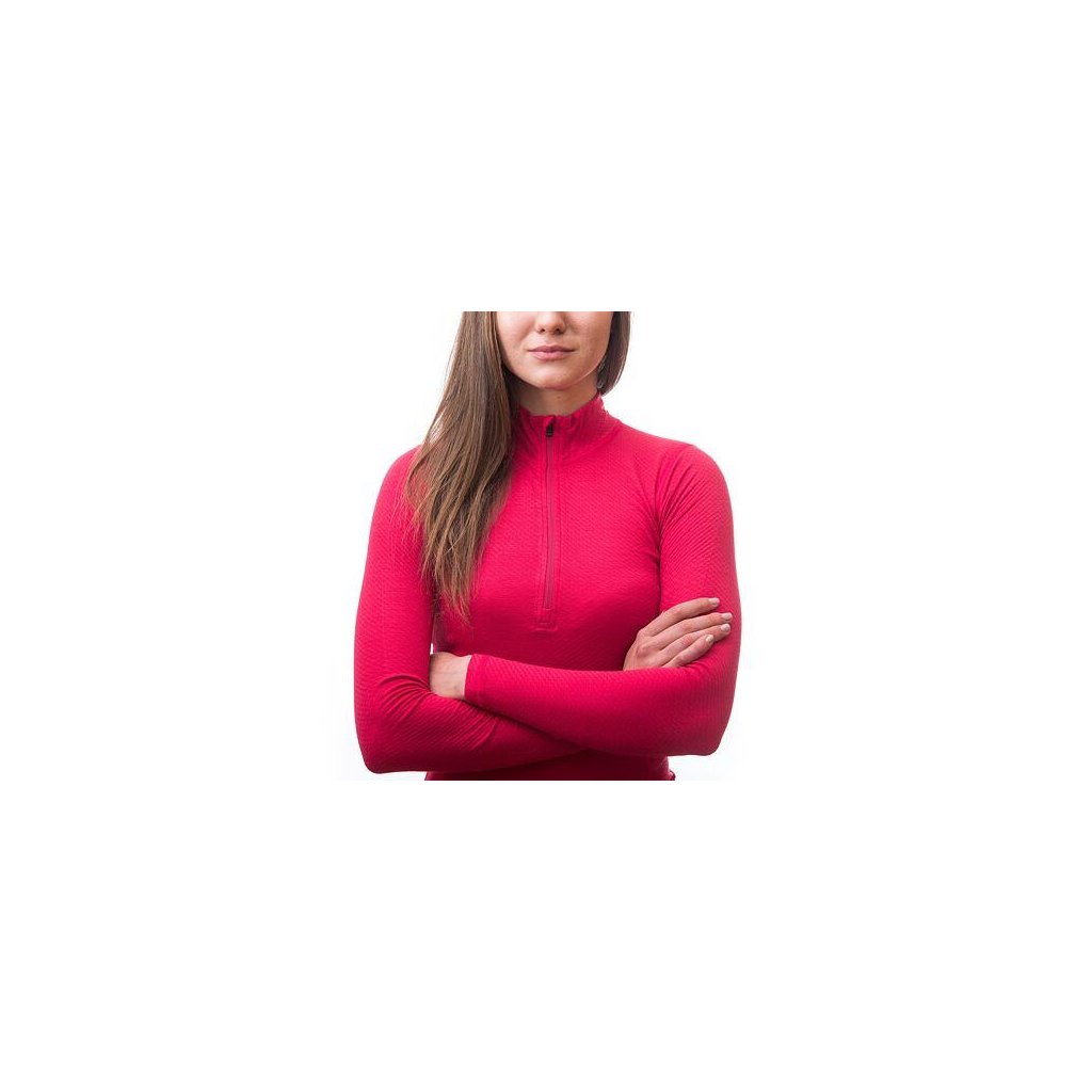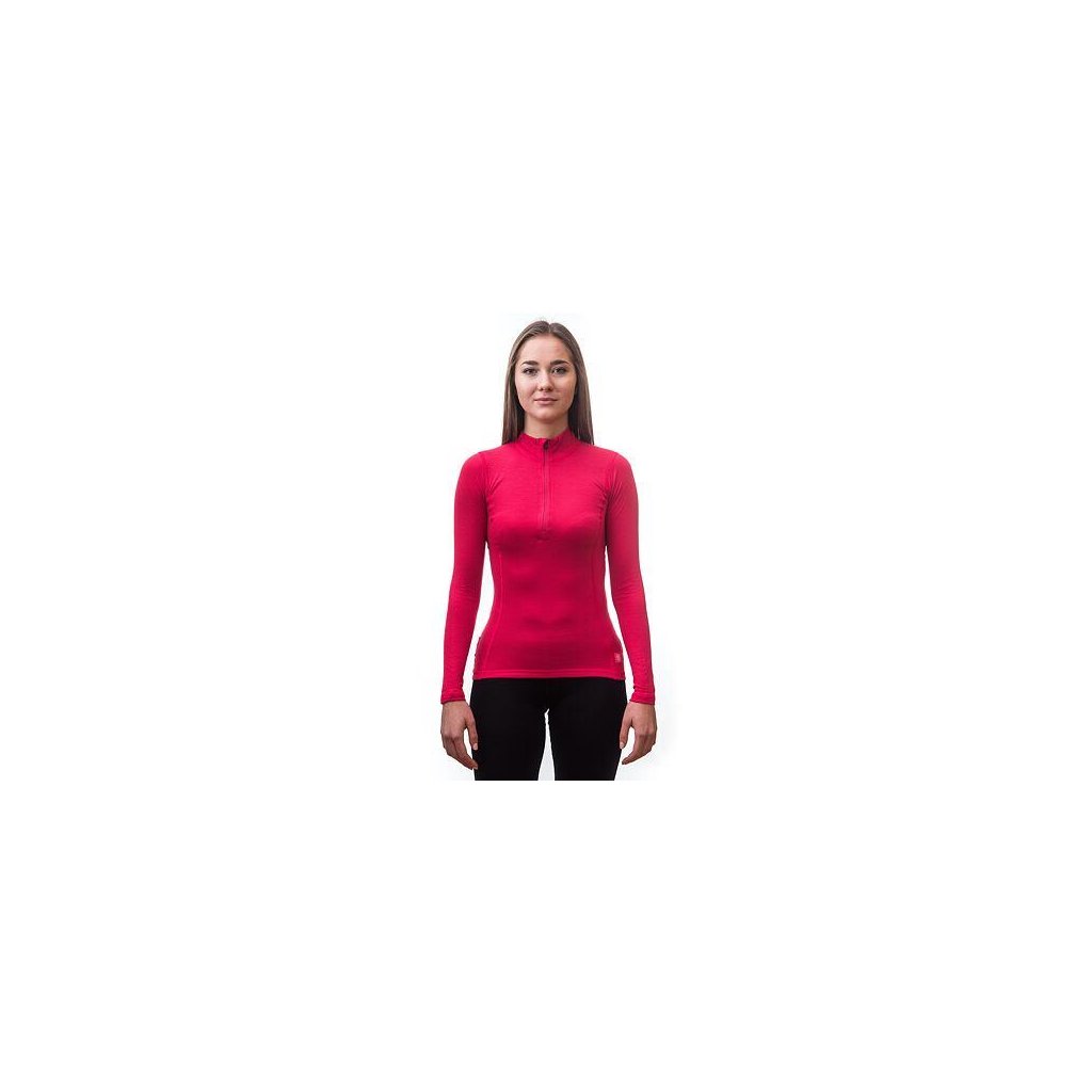 SENSOR MERINO DF dámské triko dl.rukáv zip magenta