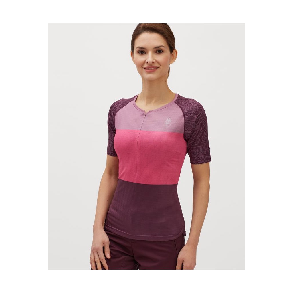 Dámský MTB dres Stabina má volný střih a je vyroben z lehkého funkčního materiálu. Ideální, když chcete vyrazit na trail a vypadat stylově. Materiál použitý na výrobu dresu je z 91 % micropolyester a z 9 % elastan. Má skrytý zip v přední části, na zádech je malá kapsička na zip na telefon či jiné drobnosti. Zip je svislý, aby nevadil při případném nošení batohu.
