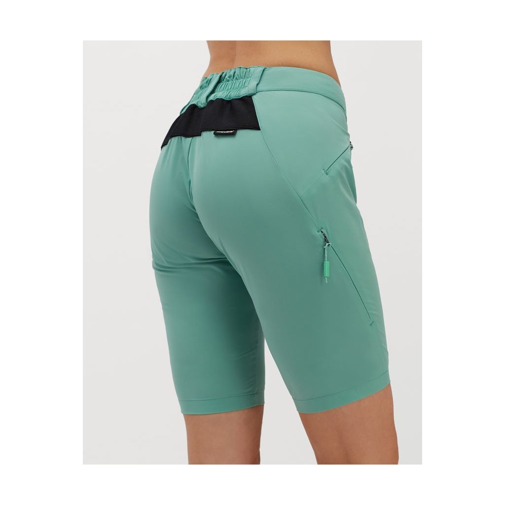 Dámské úzké MTB kalhoty nad kolena. Kalhoty mají moderní úzký střih, zvednutý zadní pás a přední zapínání na zip. Dvě klasické boční kapsy a dvě boční kapsy na zip.