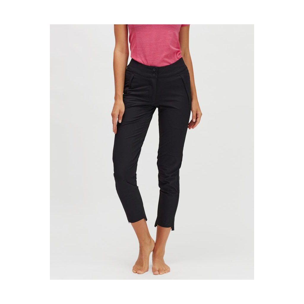 Dámské prodyšné a pružné kalhoty z materiálu Woven stretch. Vhodné na outdoorové aktivity i volnočasové nošení od jara do podzimu. Spodní lem nohavic lze ohrnout a nosit viditelně reflexní prvky.
