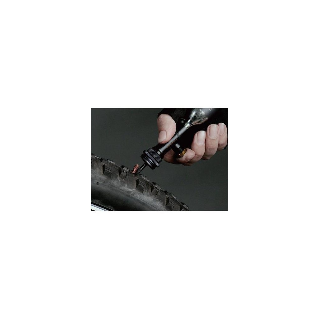 Sada na opravu a huštění bezdušových pneumatik mikro velikosti obsahující pokročilou hlavu vstřikovače CO2 2 v 1, která opraví defekt a nafoukne bezdušovou pneumatiku v jednom kroku masivním vzduchem nebo ji lze jednoduše použít jako tradiční hustilku CO2 přes dřík ventilu. Hlavice hustilky je kompatibilní s ventilky Presta i Schrader a přiložený montážní popruh se připevňuje k sedlovce nebo k rámu a může nést jednu nebo dvě 25g CO2 bombičky.