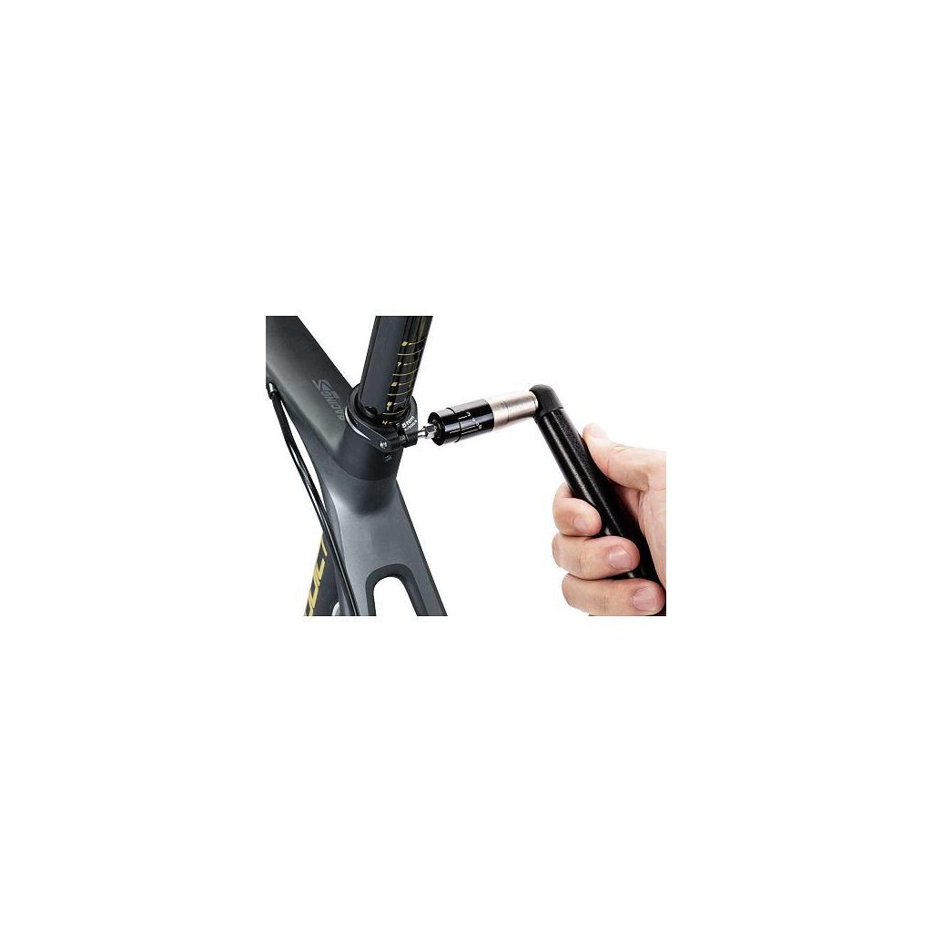 Miniaturní momentový momentový klíč s 2-6Nm nástavcem a sadou základních bitů zamezující poškození, vzniklému přetažením, například drahých karbonových částí. Dva bity mohou být umístěny přímo v těle klíče.