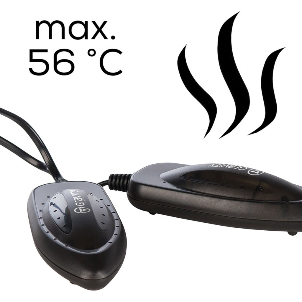 Vysoušeč navíc používá UV technologii, která ničí bakterie a působí tak proti zápachu. Díky důmyslnému tvaru topných těles s otvory zajišťuje dokonalou cirkulaci vzduchu. Maximální teplota, které vysoušeč může dosáhnout, je 56 °C. Vysoušeč je šetrný k obuvi i rukavicím a doba vysoušení se dle vlhkosti pohybuje kolem 4-5 hodin. Bezpečný provoz zajišťuje ochrana proti přehřátí. Je složen ze dvou topných těles s výkonem 8 W, každé o rozměru 16 × 6 × 3 cm. Přívodní kabel má délku 110 cm.
