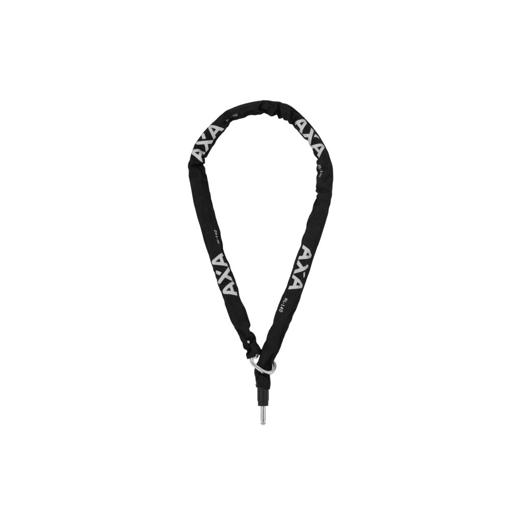 Odolný plugin řetěz pro zámky AXA (Fusion, Defender, Solid Plus, Victory). Díky tomuto řetězu můžete připoutat kolo k pevným objetům a zároveň tak zvýšit zabezpečení kola. Řetěz je uložený v polyesterovém obalu, má délku 140 cm a průměr 5,5 mm. Průměr připojovacího pinu je 10 mm.
